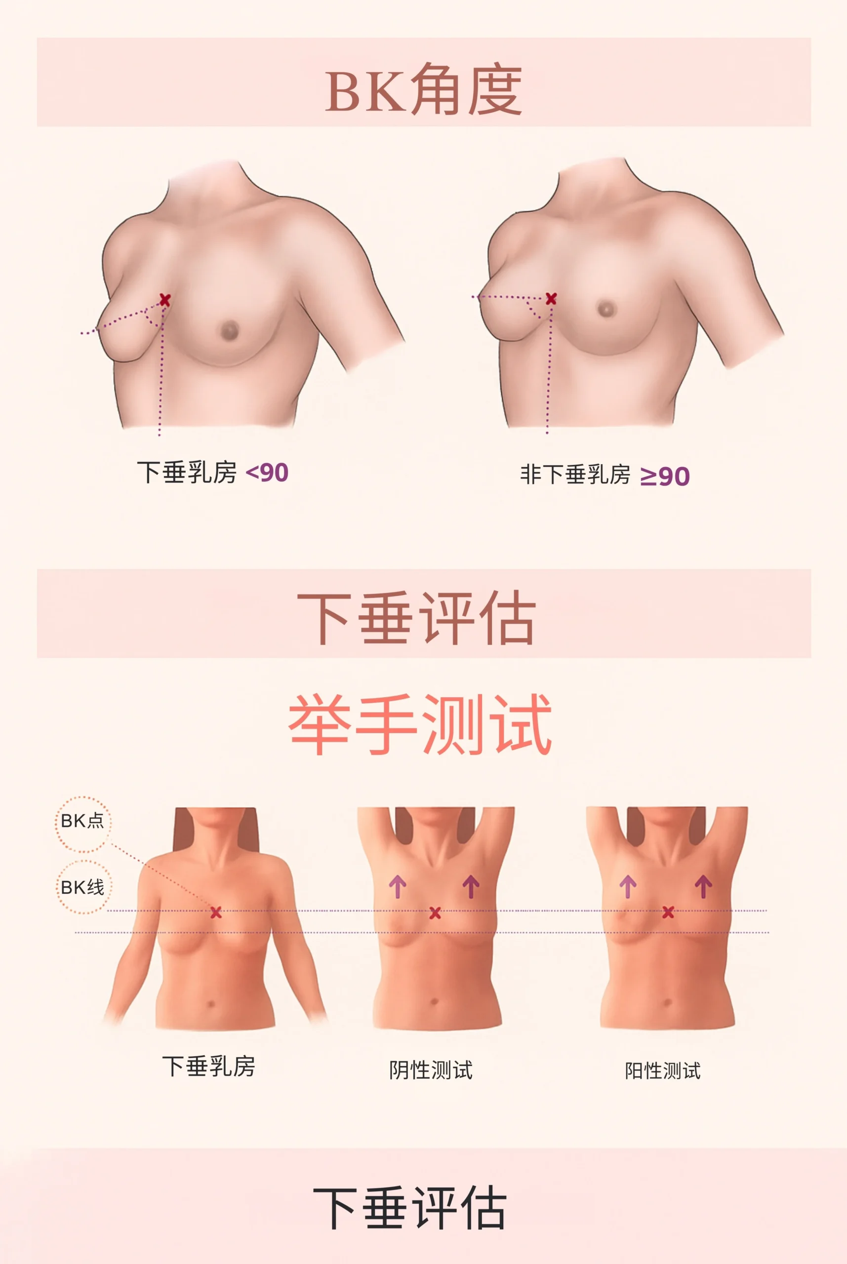 术后BK角≥90°表明乳房提升术成功,而术前也可通过这些参数预测视觉改善效果。