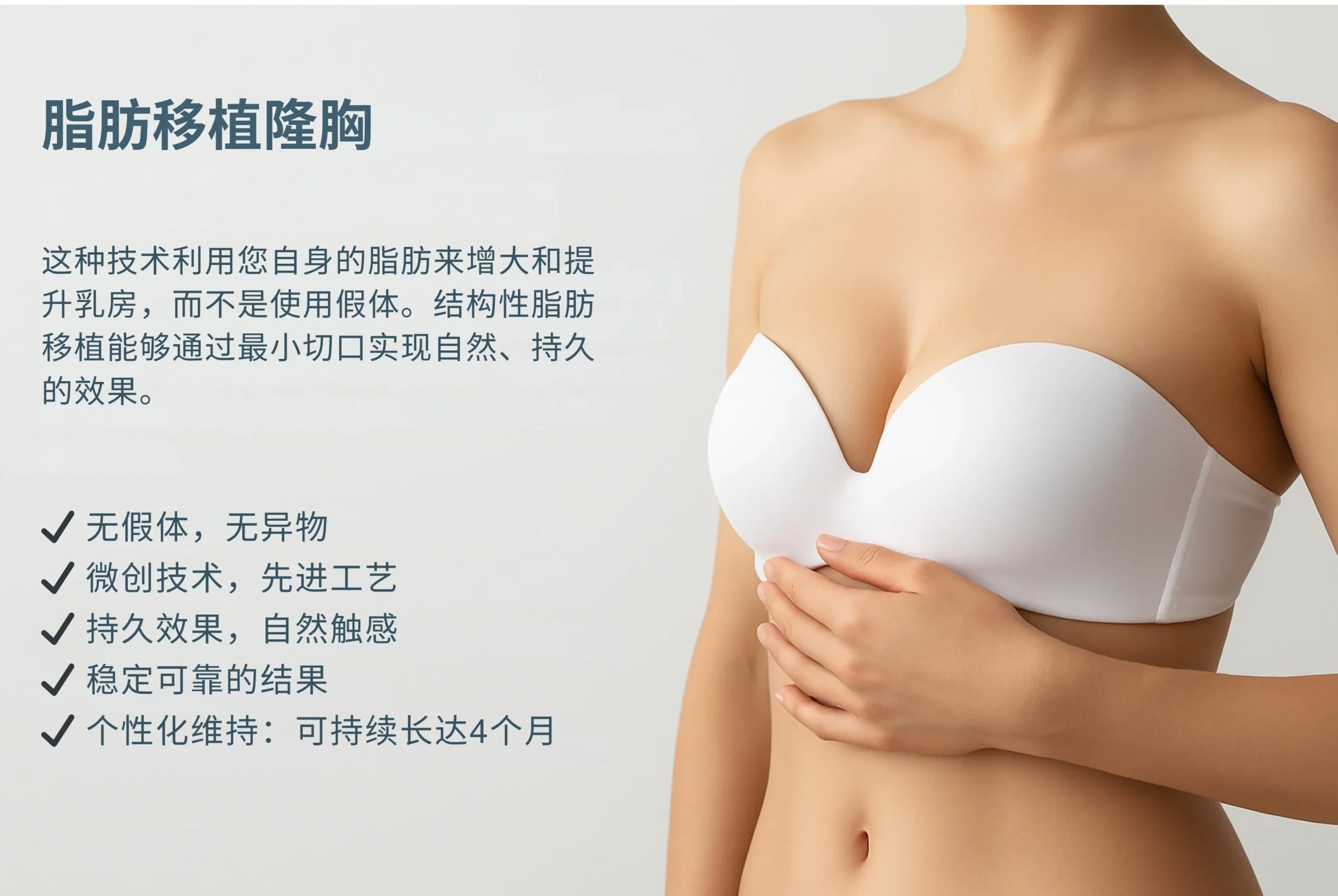 由于手术使用的是自体脂肪,因此消除了植入物相关并发症的风险,如囊肿挛缩或排斥反应。
